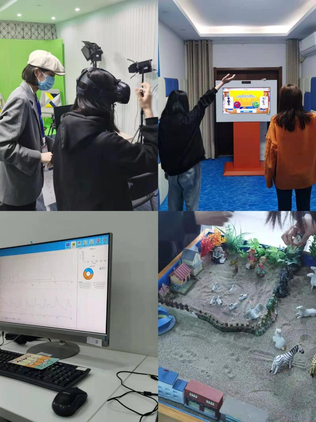 接下来到了开放日的活动流程,讲解员和引导员给同学们发放了不同的卡片,不同卡片有不同的参观路线和流程,拿到同款卡片的同学组成一队一起参观。影视启心吧通过观看轻松欢快的电影短片来达到一个放松身心的目的;音乐抚心吧用米色主题创造一个家庭一般的环境为家庭治疗法准备条件,引导员给同学们播放了正念静心的音频,让同学们躺在沙发上休息放松;沙游探心吧是提供沙滩和玩具让同学摆玩,放松舒展身心;脉动理心吧可以通过电脑仪器进行心理测试和身体状态;VR健心吧提供VR设备,让同学体验高科技给我们生活带来的改变;动感舒心吧通过运动游戏让同学们;团辅交心吧通过小组合作系鞋带的小游戏来培养同伴间的默契度。