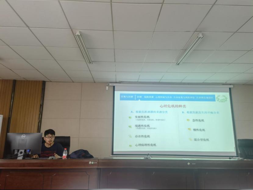 讲座过程中,尚文老师从真实案例出发,再一次敲响了重视学生心理健康问题的警钟。并为我们介绍了心理危机的具体定义、产生条件以及分类。从理解学生的角度出发,指出了大学生阶段容易产生的心理问题,以及可以采取的相关措施。还列举了处于心理危机之中的人会有具体的外部表现,从而帮助我们识别心理危机,并做及时的关注和干预,避免悲剧的产生。