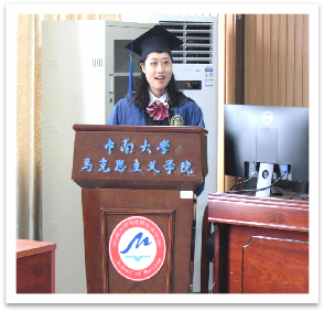 随后,研究生毕业生代表隋嘉奇发言。她表达了对学院领导、老师的感激之情。她表示,马院学子进入社会,无论走出多久,岁月只改容颜,不改属于中南马院的青春和活力,无论走出多远,希望初心永驻,永怀中南人知行合一、经世致用的志向和马院人担马列大道、争做时代英才的精气神。紧接着,本科生毕业生代表李明珠发言。她回顾四年大学时光,感谢有家般温暖的中南马院;院领导的关怀;辅导员秘老师、邹姐和瑞哥无微不至的照顾;班导师材哥的言传身教和学术导师;任课教师的传道授业解惑和父母的全力支持谆谆教诲。她激励马院学子继续拼搏继续奋斗,担当时代重任,为民族复兴、国家富强贡献自己的一份力量!