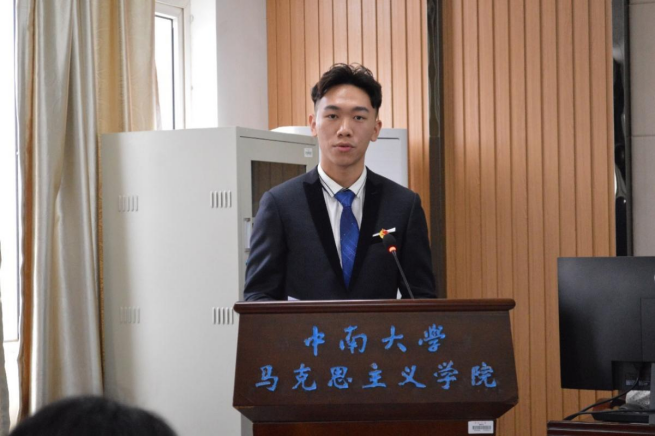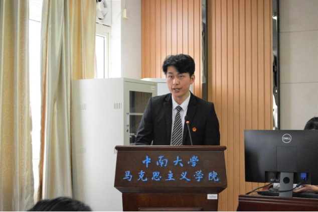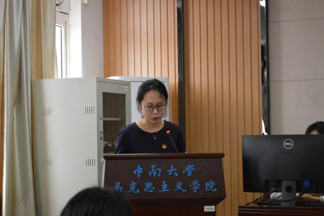 文学与新闻传播学院分团委书记易孝慈老师宣读贺信