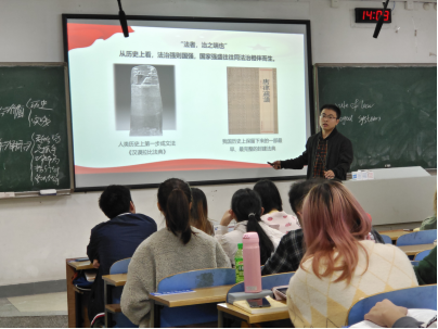 11月5日,第十周公开课最后完美收官的是秘金雷老师。秘老师公开课所讲授的内容是“全面推进依法治国”。他将“你认为法治与法制之间有什么区别?”的提问及“死刑不死”的孙小果案例分析作为了课程导入,接下来,具体深刻地讲授了全面依法治国是国家治理的一场深刻革命、明确全面推进依法治国总目标、坚定不移走中国特色社会主义法治道路、加快建设中国特色社会主义法治体系、深化依法治国实践、加强党对全面依法治国的领导等六个问题。秘金雷老师讲课呈现出以下显著特点。1.政治站位高。全面依法治国是一场深刻革命,已纳入国家全面战略布局,习近平总书记为此做出了顶层设计、描绘出了雄伟蓝图。2.核心问题讲得透彻。中国特色社会主义法治道路的核心要义是党的领导、中国特色社会主义制度、中国特色社会主义法制理论。3.讲课生动有趣。他在讲到“坚定不移走社会主义法治道路的方向”时,列举了“南辕北辙”的例子,用以说明道路、方向选择的极其重要性。4.针对性强。全面依法治国,必须抓住领导干部这个“关键少数”,顺理成章地将习近平总书记在2020年在中央工作会议上所提出的“十一个坚持”陈述了出来。