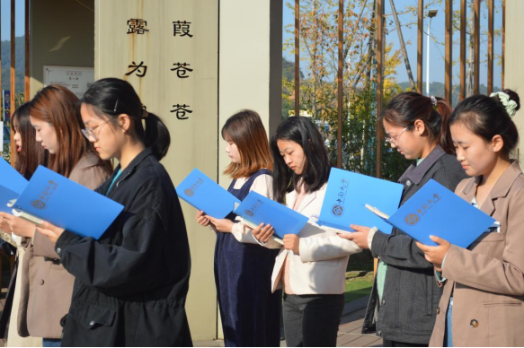在11月13日上午,为全面解读习近平总书记的讲话精神,鼓励青年学生积极担当起作为思政工作者的责任与使命,作为指导老师的胡文根老师以及思政2001班全体同学在问渠长廊举办了本次以“读习语润心,享奋进青春”为主题的分享会。活动由思政2001班组织宣传委员范雪倩同学主持。