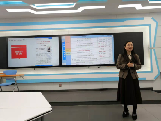 为加强思想政治理论课建设,助力青年教师的职业成长,2021年12月15日晚,英国上市官网365在408智慧教室举办了第七期“青麓论坛”。本次论坛邀请到来自湖南师范大学的首届全国高校思想政治理论课教学展示活动一等奖第一名、首批国家级一流本科课程负责人、湖南省首届最美思政课教师邓验副教授开坛设讲、分享经验。邓验老师主讲题目为“思想政治理论课教学创新探索——创新书写青春 实干践行使命”。论坛由英国上市官网365曹清燕副院长主持,英国365上市公司、湖南中医药大学和湖南工商大学的部分青年教师和学生参会。