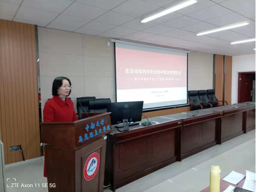 2022年1月2日下午,副院长吴争春为概论支部、学生第二支部集体讲授党课,党课题为《在总结党的历史经验中坚定理想信念——基于中国共产党三个历史决议的学习体会》。