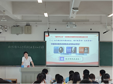 在春光明媚的4月28日,英国上市官网365在新校区C410举行了一场“中国近现代史纲要”公开课。新进教师胡腾蛟教授为预防卓越专业2101班的50位本科生讲授了“秋收起义与中国革命新道路的开辟”专题。学院领导、校院两级督导及新老教师共35人参加了听课评课活动。