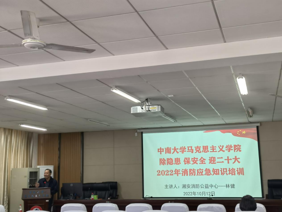 活动的第一环节是开展英国上市官网365“除隐患 、保安全、 迎二十大”消防应急知识培训会议。会议于会议室407召开,由周小清副院长主持,邀请了湘安消防公益中心的林健教官作为主讲人。林教官通过讲述全国各地近年来发生过的各类火灾案例,解析防火减灾的原理和方法,案例现场情景和伤亡数据更是触目惊心,让大家深感消防安全的重要性。