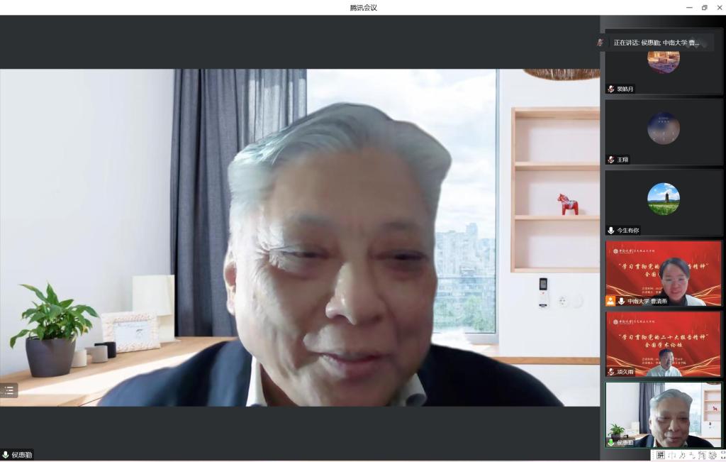 中央实施马克思主义理论研究和建设工程首席专家、教育部思政理论课教学指导咨询委员会委员、中国社科院国家文化安全与意识形态研究中心侯惠勤主任作题为《推进马克思主义中国化时代化的重大理论问题研究》的发言。