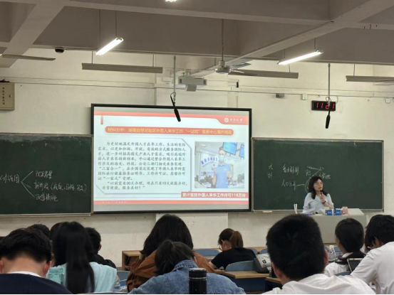 杨愉老师的公开课同样有两个显著特点:一是站在国家战略视野的高度,强调了习近平总书记提出新时代人才强国战略的重大意义,并通过对教育、科技与人才之间辩证关系的阐释,启发学生要努力学好自身专业,为科教兴国做贡献。二是讲课的干货多、形式活。不仅所讲内容丰富新颖,且充满激情,逻辑思维清晰,教学语言流畅,观点统帅材料,讲授始终紧密围绕主题主线。