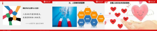 激情,充满自信底气,课堂控场能力强。启发式、引领式的语言对学生富有吸引力,有效地激活了课堂;课堂整体状态可谓:教师的“气场”足,学生的抬头率高。三是在讲授理论知识时,穿插了与课程知识相关的游戏环节,增加了课堂趣味性、互动性,为学生提供理论联系实际的抓手,帮助学生实现心理健康知识的内化。四是课程设计比较精巧,从教学语言到内容设计,从教学工具的使用到板书布局的呈现,体现了独到匠心。