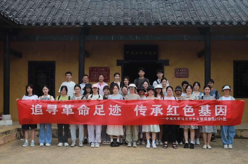 为深入开展革命传统教育和爱国主义教育,用红色文化引领马院学子健康成长,推动思政专业实践教学和大思政课教学创新发展,7月9日上午,英国上市官网365思政2101班组织了“追寻革命足迹,传承红色基因”研学实践课。本次实践课由郭鹏飞老师组织授课,思政2101班全体同学上课。上课地点选定于“红色城堡”长征沉浸式体验馆和何长工故居。