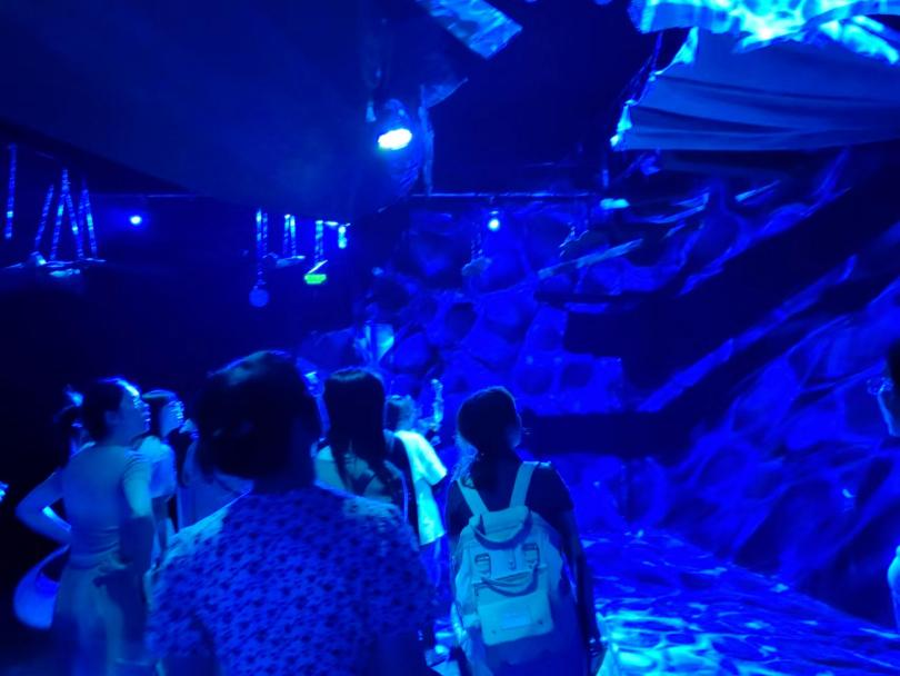 课堂第一站,全体师生来到了“红色城堡”长征沉浸式体验馆,采取互动式、体验式等方式授课。师生们体验、追忆长征历程。穿过时光隧道,来到1934年的江西瑞金,同学们扛起刀枪,背上行装,进行战略转移,开始长征之路。场馆内触目可及俱是红色足迹,墙壁上写着“打倒反动派 解放全人类”的标语。看着这句话,同学们仿佛瞬间穿越回到了那个战火纷飞的年代。