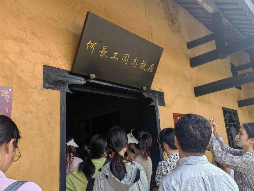 课堂第二站,全体师生来到何长工故居参观学习,采用问答式、案例分析法等方式方法授课。故居讲解员何女士带领师生,在何长工同志出生和长大的地方了解他的人生事迹,感悟老一辈革命家的精神品质。