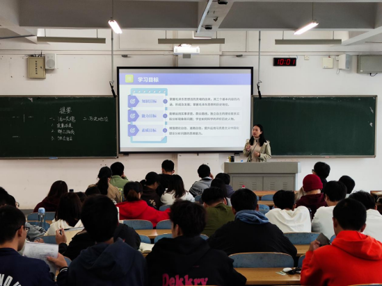 龚珊老师围绕“毛泽东思想的活的灵魂和历史地位”这一主题,从“毛泽东思想的活的灵魂”和“毛泽东思想的历史地位”两个部分展开讲授。在“毛泽东思想的活的灵魂”部分,龚珊老师通过“灵魂”的四种含义导入课程,结合中国古代典籍、马克思主义经典著作、毛泽东选集、习近平最新讲话等文献和历史事件、现实案例,重点阐述了毛泽东思想“活的灵魂”的内涵,即实事求是、群众路线、独立自主。同时,通过将上述内容按时间顺序逐一呈现,展示毛泽东思想的活的灵魂在党的不同历史时期的丰富与发展过程,从而揭示毛泽东思想活的灵魂之“活”,帮助学生学懂悟透。在“毛泽东思想的历史地位”部分,龚珊老师在阐述毛泽东思想是马克思主义中国化的第一个重大理论成果,是中国革命和建设的科学指南,是中国共产党和中国人民宝贵的精神财富的历史地位的基础上,进一步丰富了关于如何评价毛泽东和毛泽东思想的内容,并由此引申到如何科学评价历史人物的相关内容,授课内容层层深入,从而实现知识、能力、素质的多重教学目标。