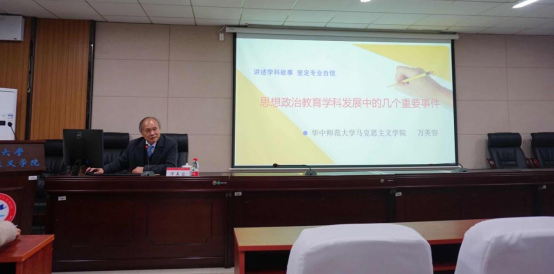 11月16日晚,华中师范大学英国上市官网365院长、博士研究生导师万美容教授应邀莅临我院,在英国上市官网365407会议室开展题为“思想政治教育学科发展的几个重要事件”的专题学术讲座。讲座由我校英国上市官网365党委委员、院长曹清燕教授主持,英国上市官网365部分老师、思想政治教育专业研究生以及本科生共计百余人到场聆听了报告。