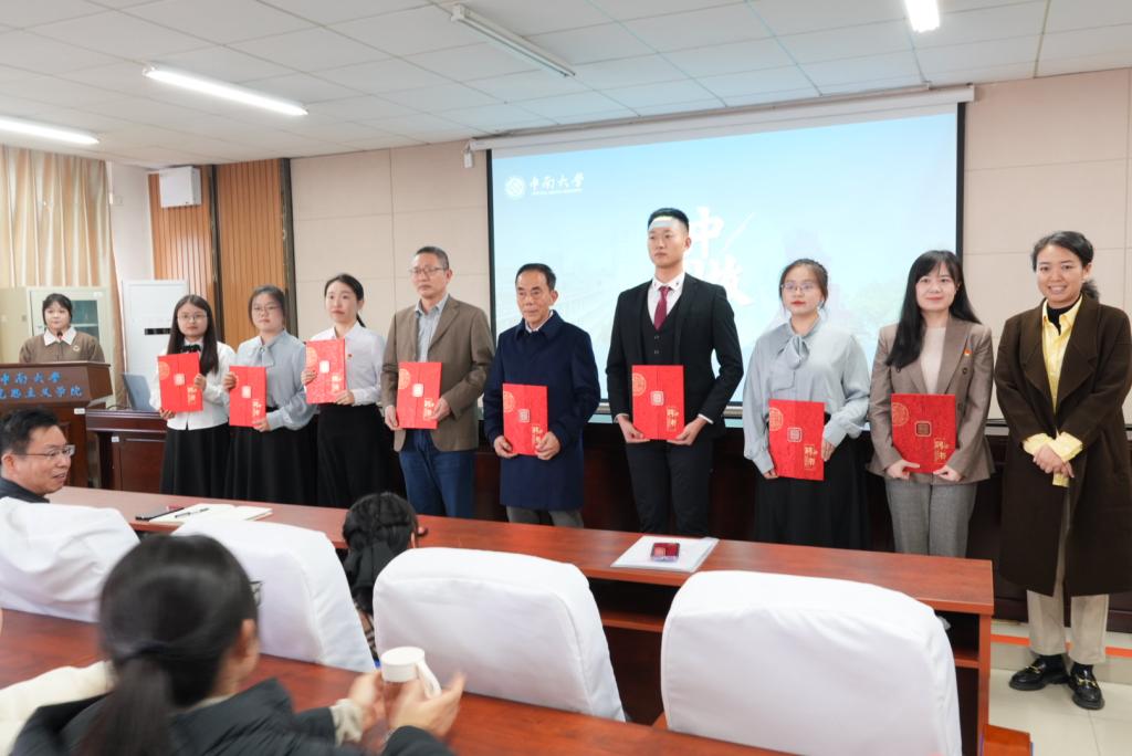 党委宣传部常务副部长胡杨同志为本期“讲述•中南故事”宣讲团成员颁发聘书。