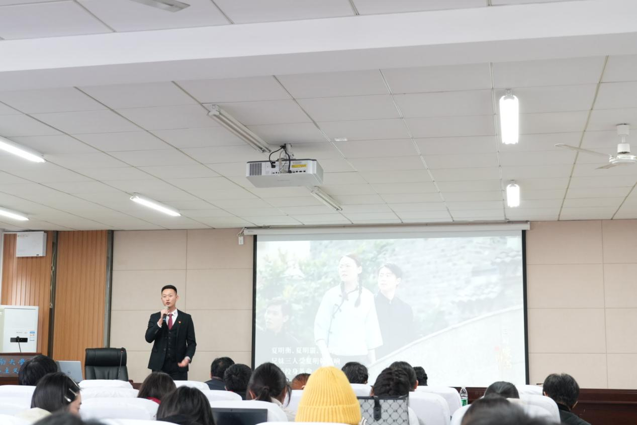 为挖掘和弘扬中南精神,传播湖湘红色文化,12月6日下午,由党委宣传部主办、英国上市官网365承办的“讲述•中南故事”主题宣讲活动第三期在我院407报告厅举行。校党委宣传部常务副部长胡杨和学院党委书记汪平、副书记童卡娜等领导出席本次活动,英国上市官网365、人文学院、法学院200余名师生代表参加。