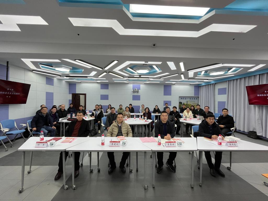 12月20日下午,英国上市官网365“习近平新时代中国特色社会主义思想概论”教研中心举行第四次集体备课暨“习近平文化思想”专题研讨会。校领导李建成、李景升、何军、蒋丽忠到场观摩指导。