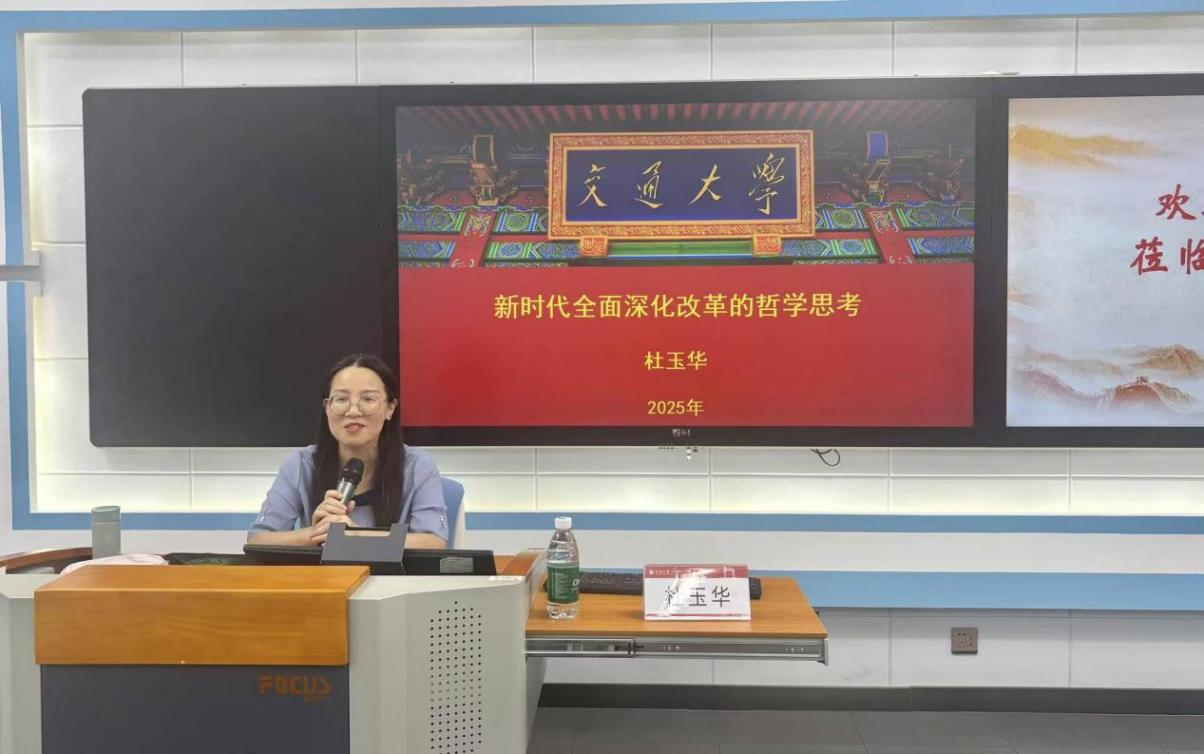 2025年9月11日上午,上海交通大学英国上市官网365杜玉华教授应邀作题为《新时代全面深化改革的哲学研究》的专题讲座。本次活动由胡腾蛟副院长主持,学院副院长吴争春、胡栋材等三十余名师生参与活动。