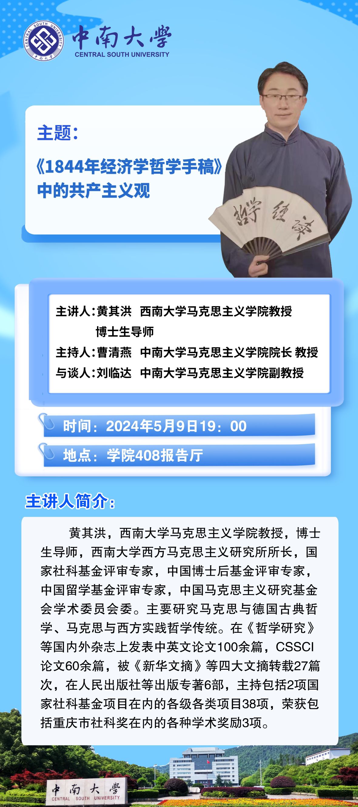 黄其洪学术讲座:《1844年经济学哲学手稿》中的共产主义观