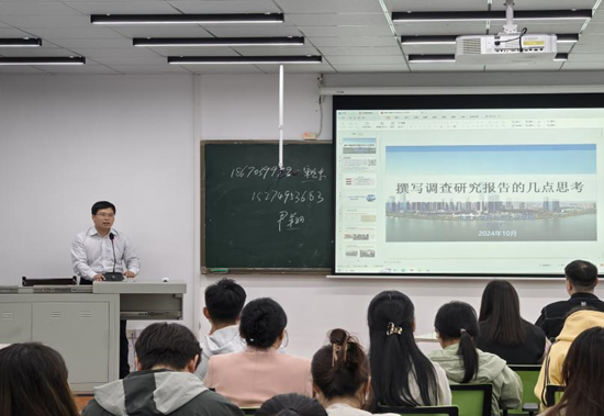 刘飞仁老师通过调查的正向分析从调查报告实例的序言到写作技巧,对同学们进行了范例性的指导,他强调,调研报告的核心部分是实事求是地反映和分析客观事实,选取别出心裁的标题,丰富充实的内容,最好可以让人身临其境。他强调要从宏观、中观和微观三个维度出发,全面认识问题、综合评判要素、深入剖析原因,最终才能得出科学的解决方案,写出兼具深度和广度的调研报告。