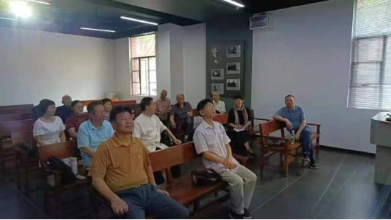 党日活动的第一项内容,是参观党性教育五个展厅的陈列。在展览大厅,伴随着讲解员深刻而生动的讲解,党员同志“不忘初心、牢记使命”的坚定信念油然而生。老同志按序参观学习了“掌握党性理论”、“明确实践要求”、“学习光辉典范”、“吸取惨痛教训”、“传承红色基因”五个展区。展览中的每一件珍贵实物、每一张历史图片、每一个逼真复原的革命先驱奋斗场景,均使老同志再次受到了心灵的洗礼。是啊,中国共产党经过艰苦卓绝、付出巨大牺牲的百年奋斗历程,才迎来了今日的辉煌。打江山难,守江山更难。大家不禁想起了革命导师列宁的教诲:“忘记过去,就意味着背叛。”置身其中,同志们仿佛与革命先辈进行了一场时空对话。在激情被点燃的时刻,大家在曾长秋教授的领诵下,高声诵读了入党誓词,顿感热血沸腾;随后又观看了主题教育片《信仰》,又是一次生动的党性教育。