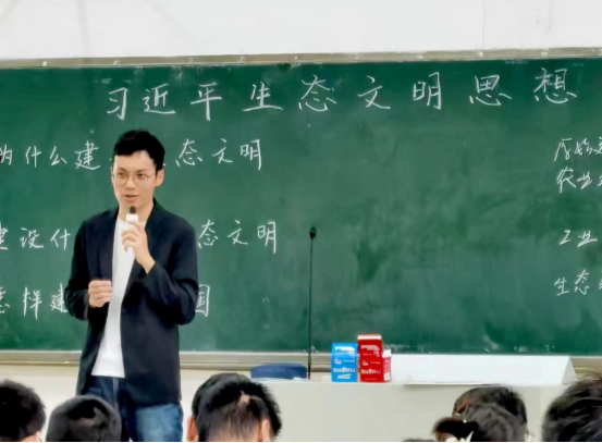 黄伟韬老师讲课主题为“建设社会主义生态文明”。以“为什么”“是什么”“怎么样”的逻辑顺序展开,系统介绍了习近平生态文明思想的高远立意和深刻内涵。并组织学生进行课堂讨论和小组汇报,就低碳生活、生态文明建设中的中南担当进行探讨和展示。学院党委理论学习中心组成员与听课督导、教师一起就课程建设进行研讨。学院党委副书记、院长王翔指出,把习近平新时代中国特色社会主义思想概论课讲深、讲好、讲活需要大量的素材,不仅要对理论进行全面深刻地阐述,也要让学生参与、思考,实现老师主导与学生主体相结合。教研中心要加强集体备课,群策群力,要了解学生所思所想、把握学生思想状况,让习近平新时代中国特色社会主义思想入脑入心,不断增强学生对新时代党的创新理论的认同,使学生真心喜爱、终身受益。