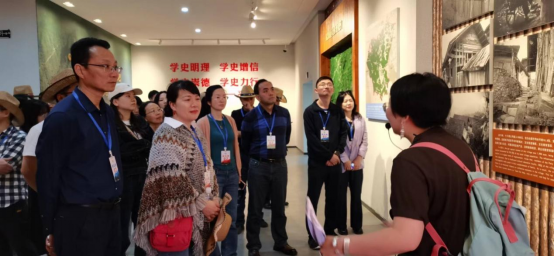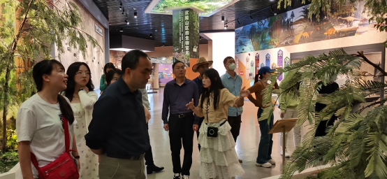 离开十八洞村,带着对湘西地域和悠久民族文化的好奇,支部党员们一起走进了湘西世界地质公园博物馆。湘西地质公园博物馆馆内分为“金钉子”“红石林”“矿产资源”“生物生态”等9个厅,是一个集收藏、保护、研究、展示、宣教五大功能于一体的综合博物馆,全方位、立体化介绍湘西州喀斯特地貌的形成与特点,多角度展示湘西世界地质公园的地质地貌景观、民族人文景观、生物多样性和建设发展成效。