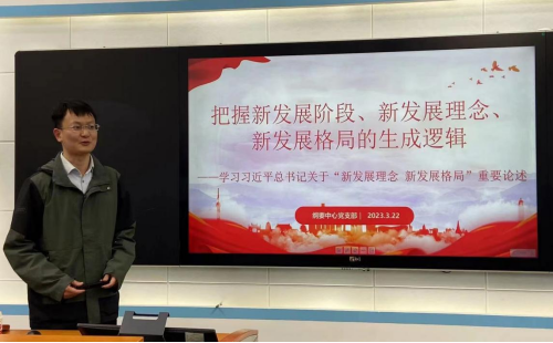 2023年3月22日,中国近现代史纲要教研中心党支部于学院408教室开展主题党日活动,就进一步学习领会党的二十大精神,具体围绕贯彻新发展理念,推动构建新发展格局开展研讨交流。本次主题党日活动由柴念、张喆、张檀秋和孙威四位同志主讲发言。