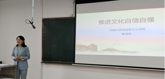 党员同志们对于什么是文化自强、为什么党的二十大报告在文化自信的基础上又提出文化自强等理论问题具有浓厚的学习兴趣,认真倾听了曹院长的讲解。