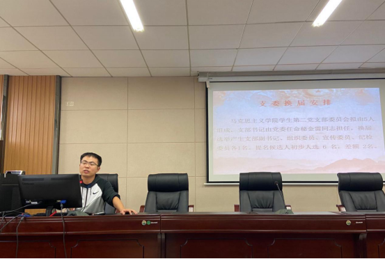 会议第一项,开展学生第二党支部支委换届选举。为进一步增强学院基层党组织队伍建设,为党组织注入新鲜血液,增添新活力,现面向全体学生党员遴选支委班子成员。所有竞选者发表约5分钟竞选演讲之后,所有正式党员采取无记名投票的方式进行表决,经过最终的投票、监票、记票,党支部书记秘金雷同志公布选举结果,大会宣布徐敏、袁玉勤、彭汉玉、蒋宙澄四位同志获得的票数超过实到会有选举权人数的半数,担任学生第二党支部委员。