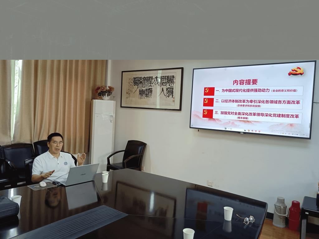 马院党委老龄委员、胡晓副院长正在做关于党的二十届三中全会精神宣讲报告