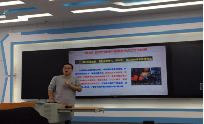 胡文根老师所讲主题是“新时代中国特色社会主义理论与实践——如何讲好中国故事”,胡文根老师从讲好中国故事的重要性和必要性,讲好中国故事的主题和内容层次,讲好中国故事所面临的问题挑战,新时代讲好中国故事的方式方法创新四个方面讲述了他的教学设计,讲解过程思路清晰,案例与主题贴合,获得了老师们的一致好评。